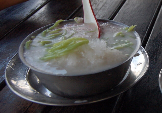 チェンドルは、基本的に氷、チェンドル、小豆にココナッツシロップがかかっています。
