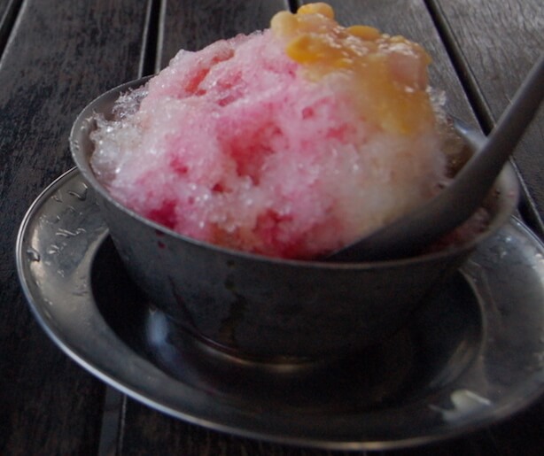 ちょっと高級なお店に行くと、さらに白い液体の様なもの(ココナッツミルクを凍らせて削ったもの)がかかっています。