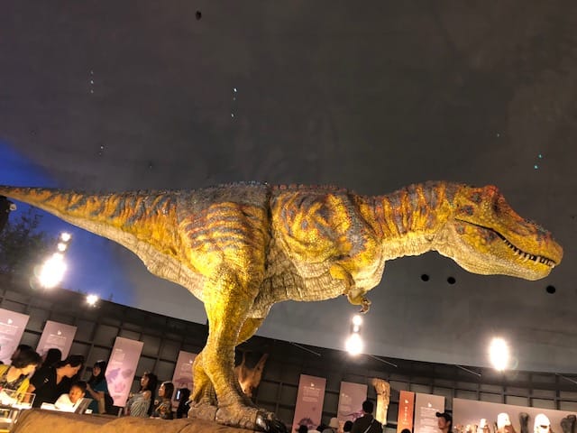 ロボットと言っても、ほんとうにリアルにできています。まばたきをする目、咆哮する口、本物そっくりな動きに、子供も大人も大興奮です。