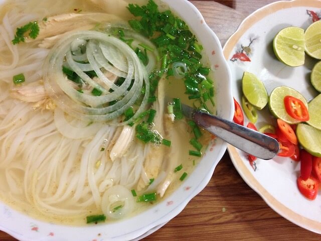 鶏肉のフォーはさっぱりしているので、旅行の疲れがで始めた時や前の日に食べすぎて胃もたれしちゃった…っというときにもぴったりです。