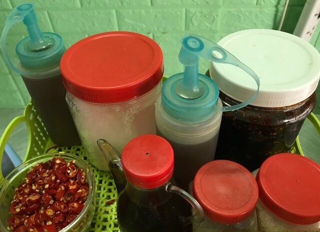 ホーチミンの屋台によくある風景:テーブルの上の調味料