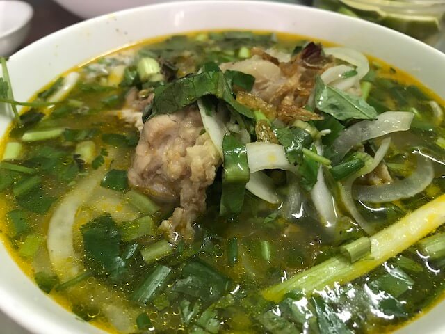 ベトナムでフォーと同じくらい見かけるのがこちら!ボンホーフエという名前のスープ麺です。