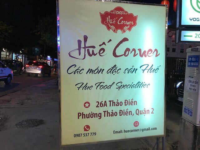 ■お店の情報 ・店名:Hue Corner ・住所/Googleマップ:26a Đường Thảo Điền, Thảo Điền, Quận 2, Hồ Chí Minh ・営業時間(Googleマップより): 8時00分~21時00分