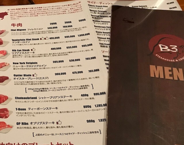 今日は特別なディナーが食べたい!と言う時におすすめなのは「B3」というステーキショップです。