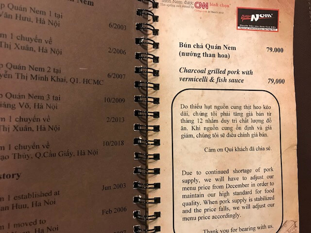 しばらくすると、ベトナム人のスタッフが日本語で注文を聞きに来てくれました。