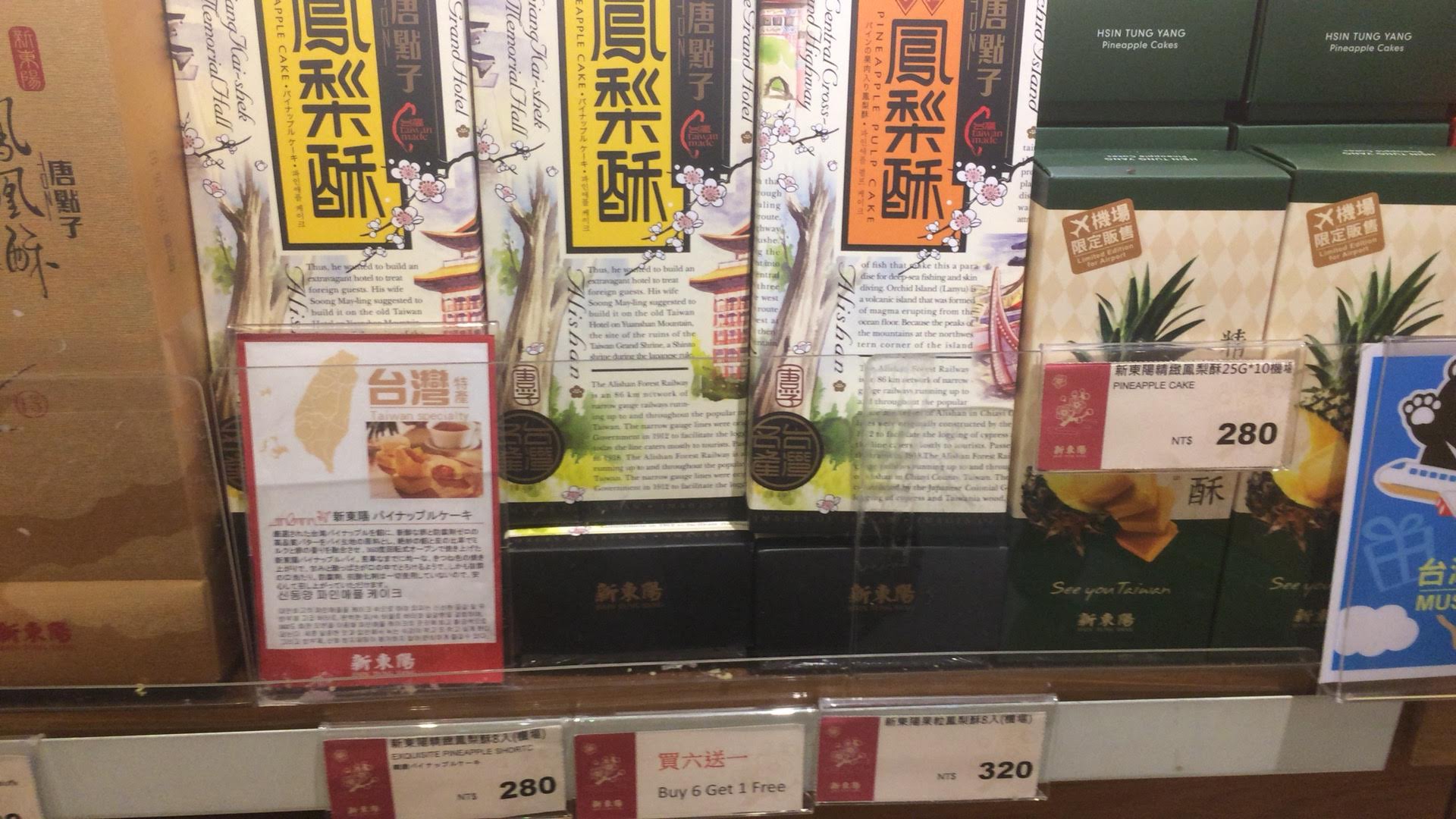 国際線ターミナル・出国ロビーで、出国ゲートを正面に見て右側の端に、「新東陽」という台北などでもよく見るお土産屋さんがあります。