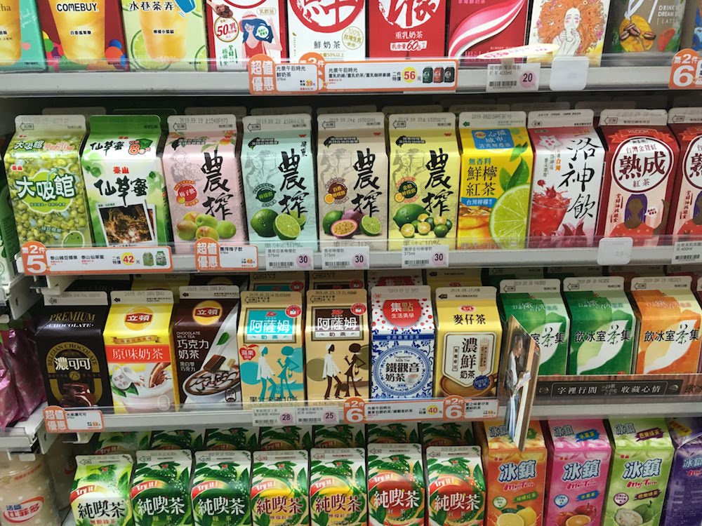 コンビニの飲み物のコーナーを見ると、ずらーっと日本では目にしない台湾現地の飲み物が並んでいます。