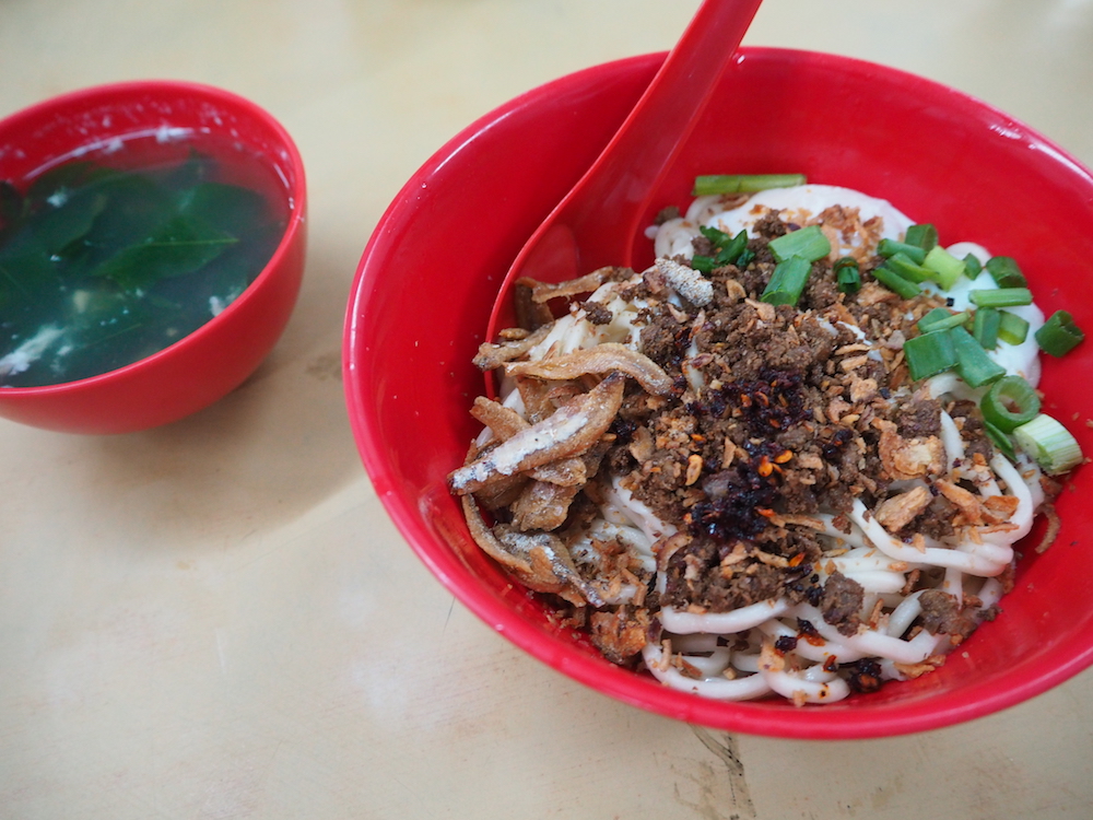 注文の仕方がわからず、とりあえず2番というジェスチャーで頼んでみました。すると、近くのテーブルにいたおじさんが片言の日本語で 「汁なし麺、美味しいよ」と日本語で暖かく迎えてくれました。