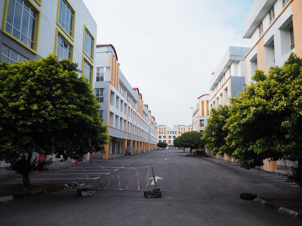 ここだけなぜか別世界のような雰囲気、なぜそのように感じたかと言いますと、真新しい建物が規則正しく並んでいるのですが全く人の気配がしない、まさにゴーストタウンなのです。