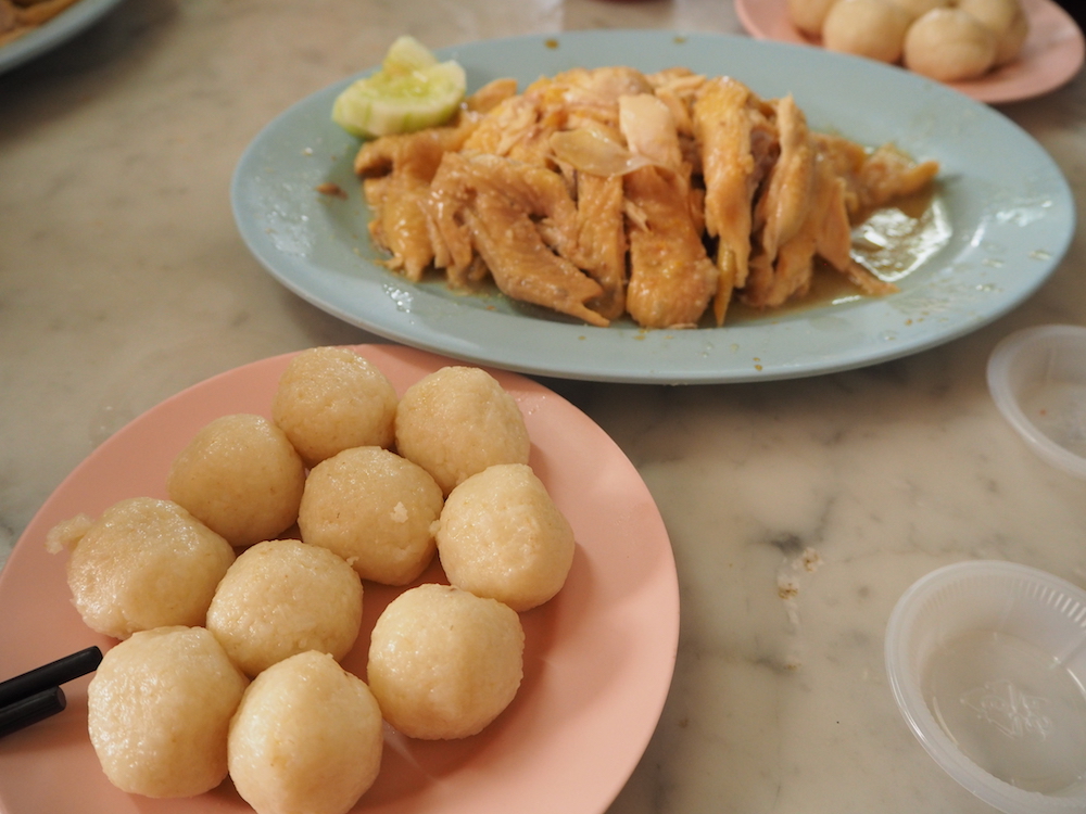 行列を30分程で並び終え(意外と回転は早いです)、チキンとライスボールを注文。マラッカのチキンライスはチキンライスボールと呼ばれており、チキンの下にご飯がそのまま載せてあるのではなく、ライスが直径3cm程に丸められた状態で出てきます。