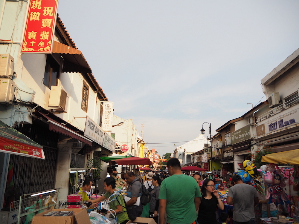 ここから見る景色はお世辞にも綺麗とは言えないマラッカ川、その対岸に並ぶ建物が木々と合間って美しく見えます。夜はライトアップされ妖艶な雰囲気を醸し出します。橋を渡るとそこはもう中華街です。
