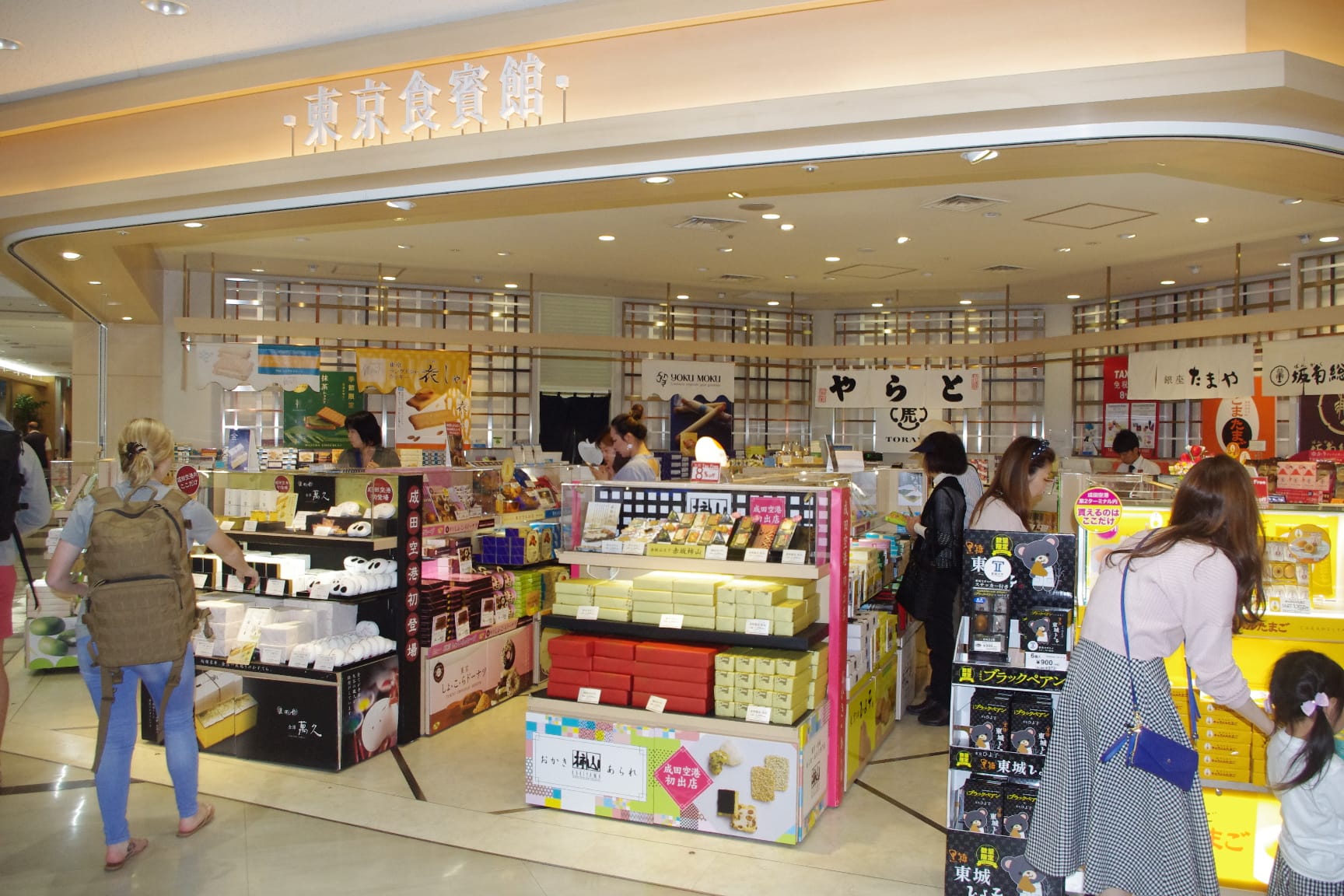 成田空港では、第1・2・3ターミナルのそれぞれにお土産店を置く「東京食賓館」で、とらやの羊羹や和菓子商品をお土産として購入することができます。