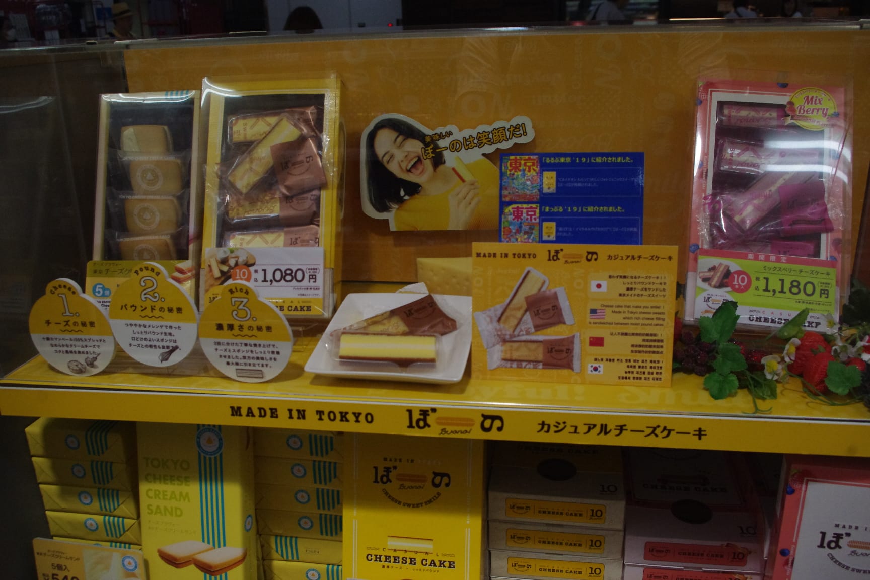 成田空港では、第2ターミナル1階のBLUE SKY(ブルースカイ)のお土産屋さんで他のたくさんの洋菓子・和菓子とともに陳列して販売されていました。