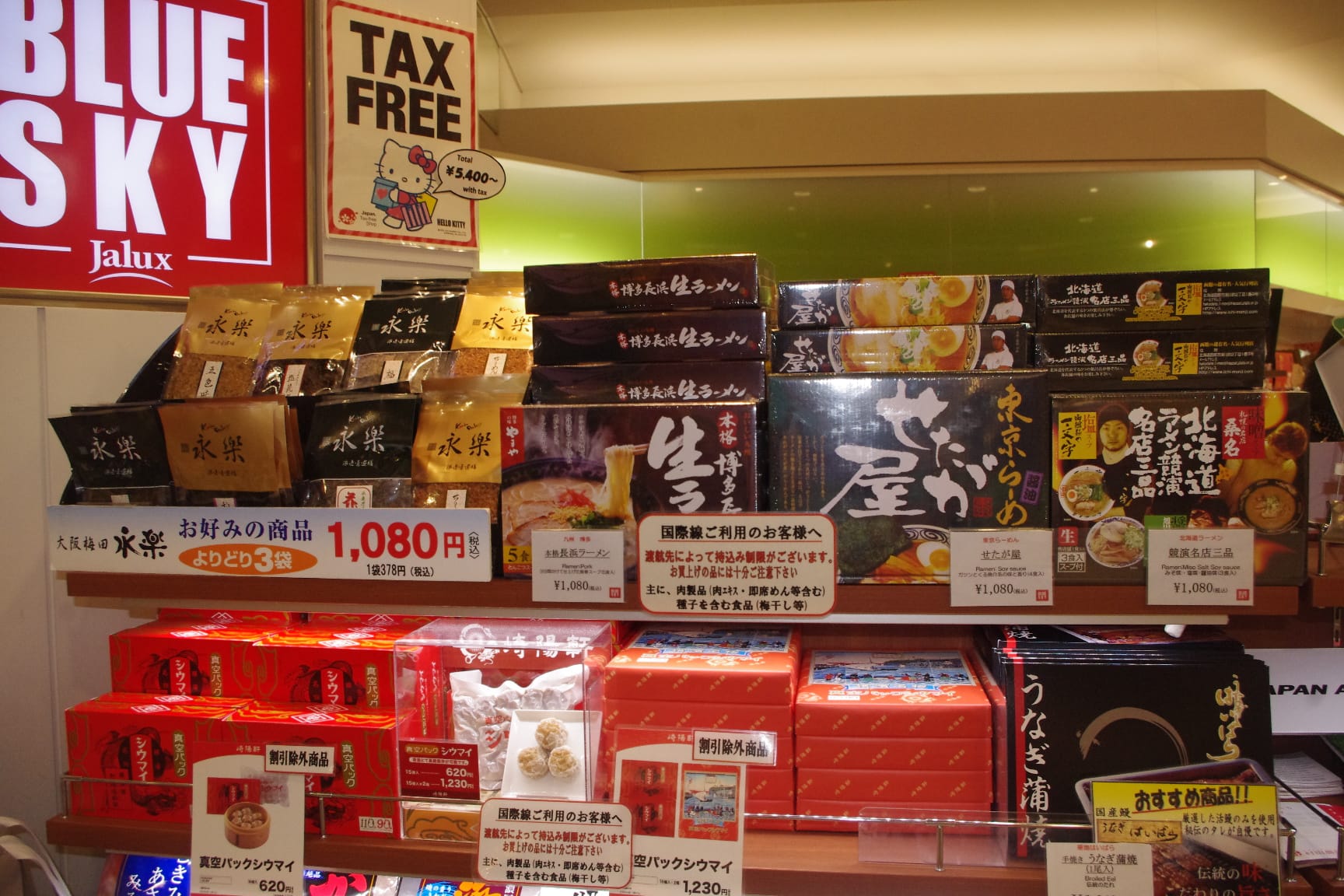成田空港内の販売場所は、私が訪れた時は第2ターミナルの「BLUE SKY(ブルースカイ)」では数々の種類(ラーメン店)の生麺・スープのセットが売られていました。