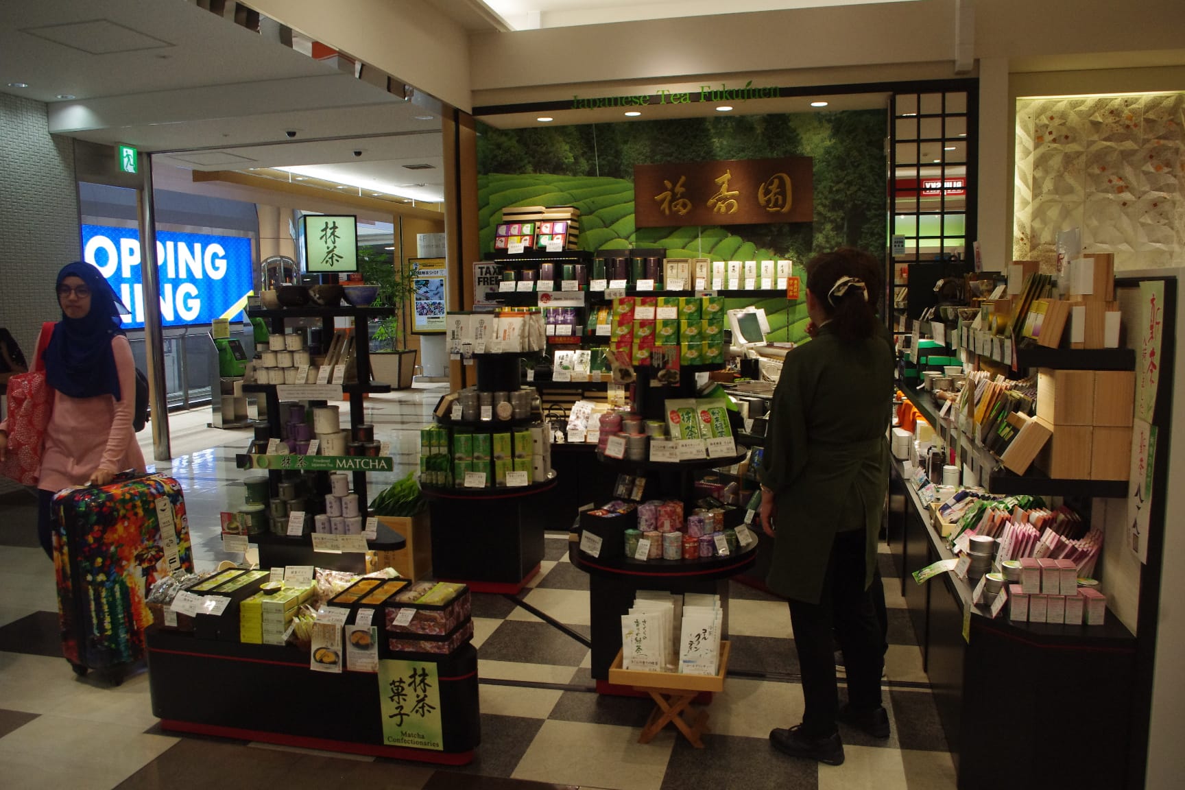 成田空港内の第2ターミナル4階(出発前)に福寿園があり、第1ターミナルの北ウィング4階と南ウィング3階に伊藤園のお店があります。