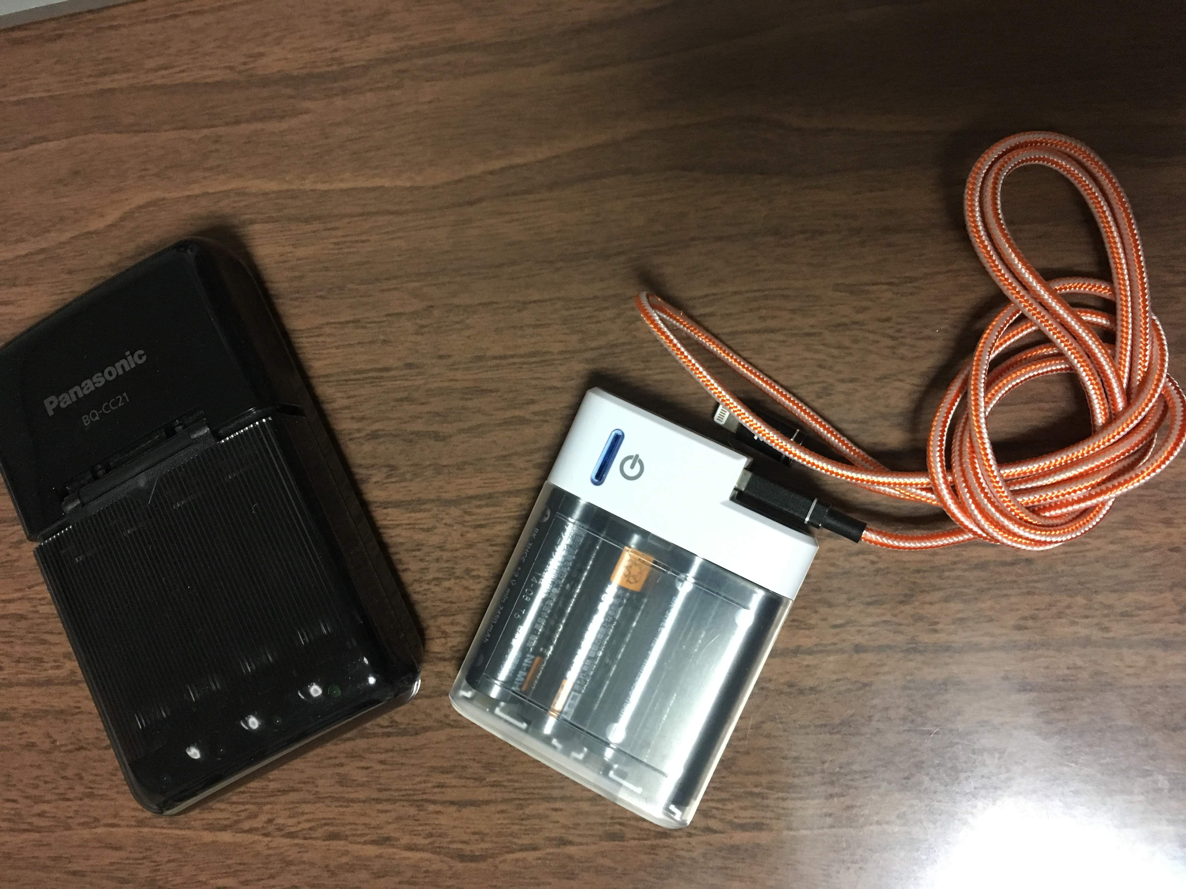 妻はモバイルバッテリーを使用していました。長距離バス移動で充電設備がない場合はかなり助かります。また、変圧器は世界共通のものが1つあれば便利です。