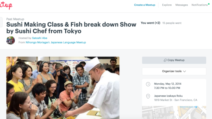 ■meetupイベントページ: Sushi Making Class & Fish break down Show by Sushi Chef from Tokyo