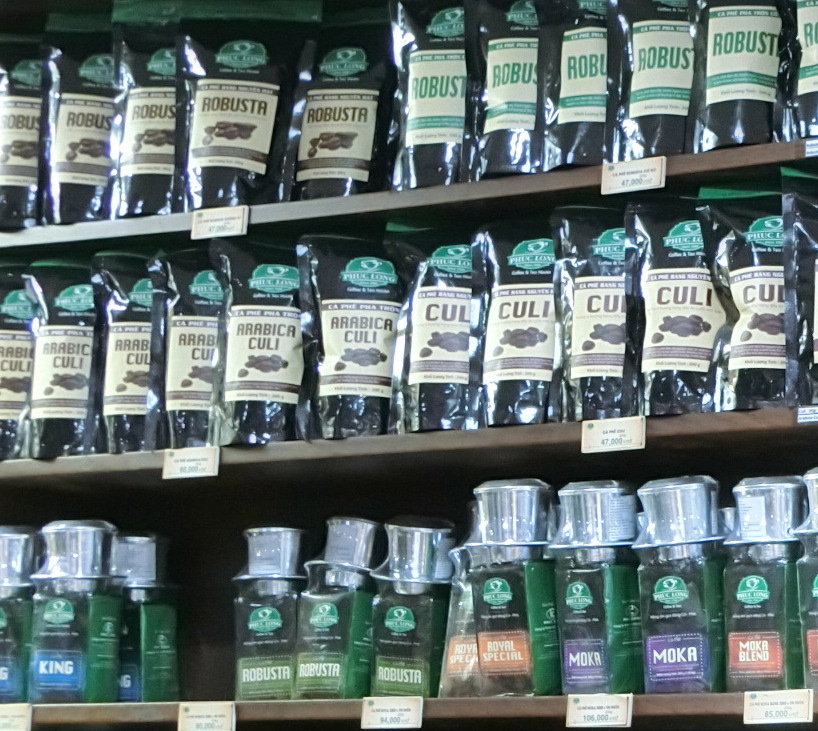 そのため(?)か、ベトナムにはたくさんのカフェショップがあり、スーパーに行くとたくさんの種類のコーヒー豆が売られています。