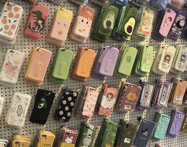 ホーチミンの所々で見かけたiphoneケースのお店…日本円にして500円以下の物が多く、シンプルなデザインのものから、凝ったデザインのものまで種類も豊富です。