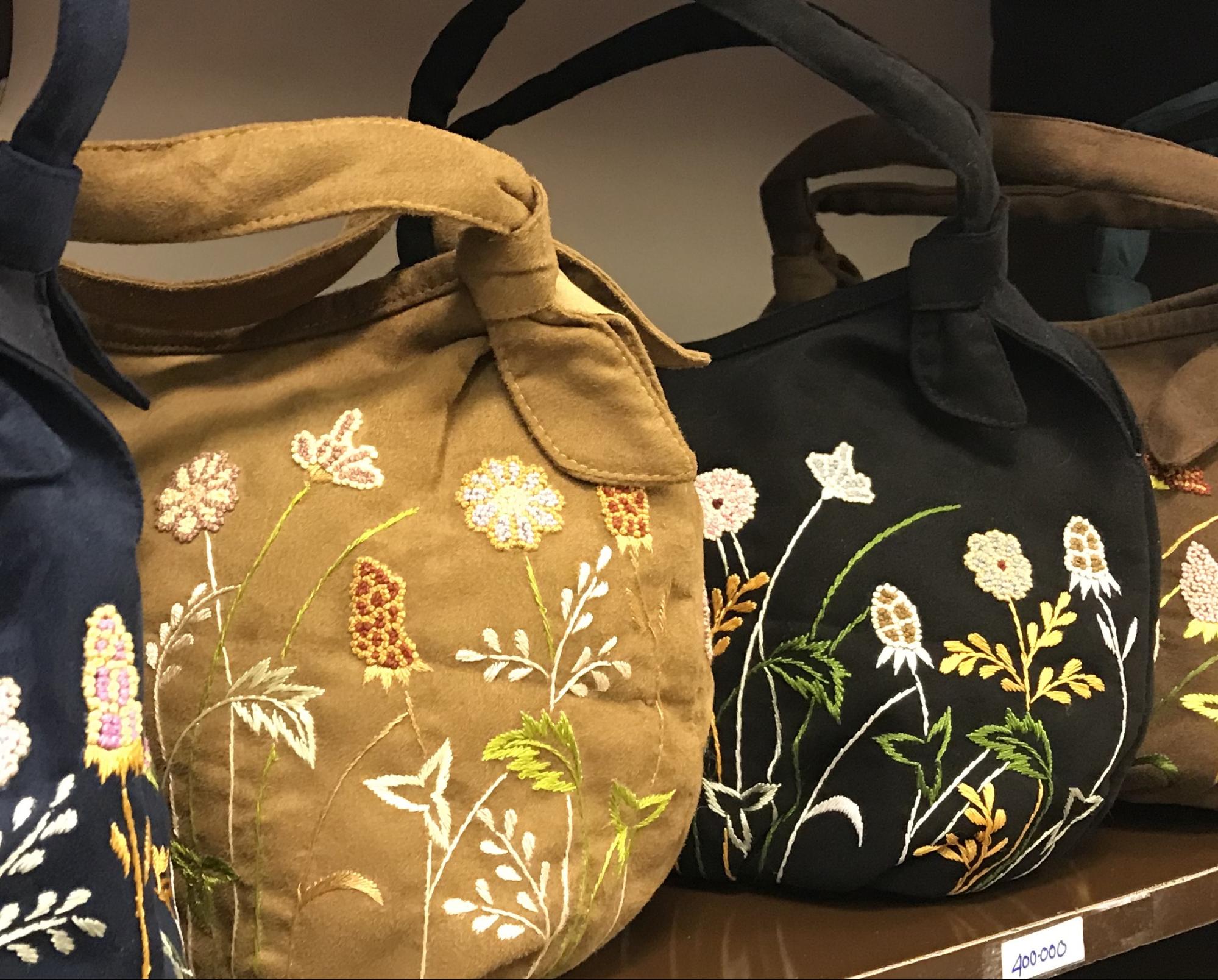 凝ったデザインの鞄が置かれていたり、きれいな刺繍が施されていたりと、縫製が細かいなと感じました。