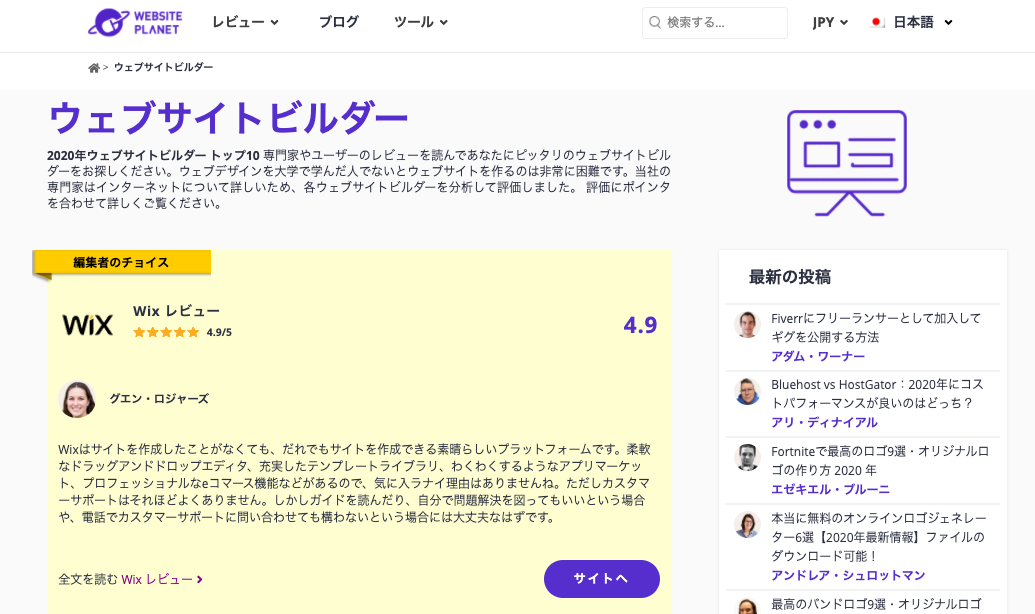 1位のサービスは、日本でも多くのユーザに利用されている、イスラエルの「Wix」。
