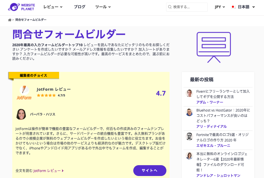 ウェブサイトなどにリッチなデザインや豊富な機能を持たせて、問合せフォームを作成することができる、問合せフォームビルダーについても、海外の人気サービスをレビュー・格付け紹介しています。